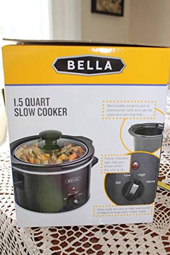 BELLA 1.5 Qt Quart Slow Cooker Crock w/Tempered Glass Lid