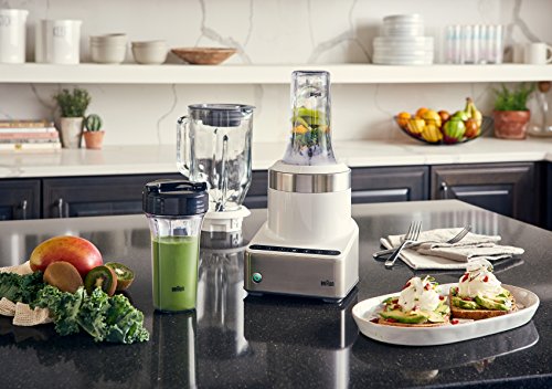 - Attachments included: 20 fl oz beaker (BPA free), whisk, 1.5-Cup chopper, masher, 6-cup food processor, jug blender/ice crusher
