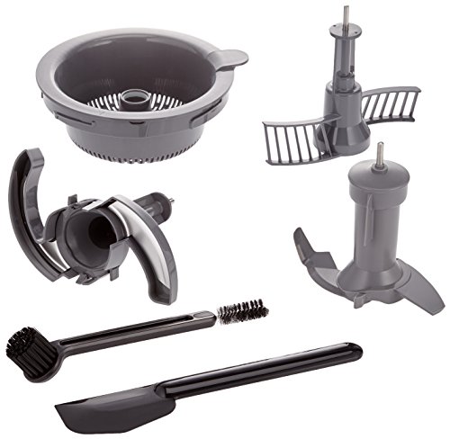 - Functionalities: Juice extractor, slicer, grater, shredder, kneader, citrus press, mixer, beater