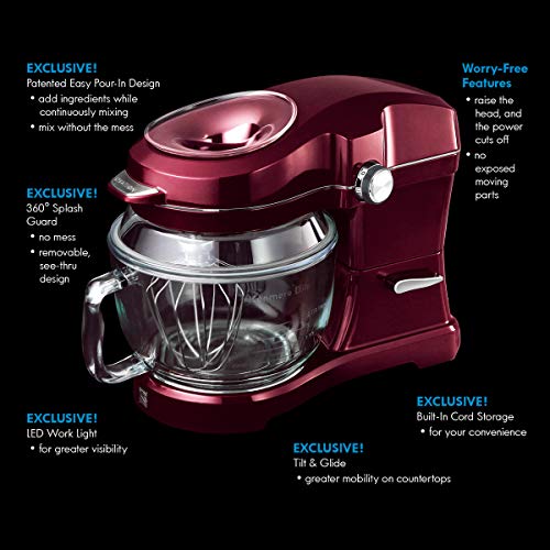 - Elite Ovation Exclusive Pour-In Top, 5-Qt. Tilt-Head Kitchen Stand Mixer, Red Burgundy