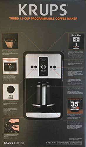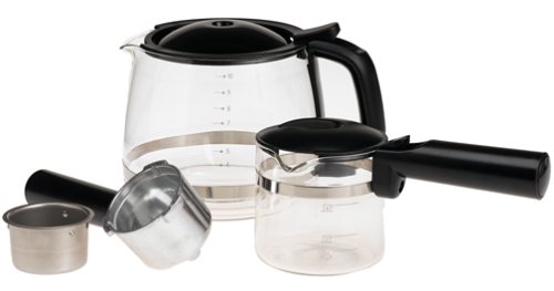 - Large 10-cup coffee carafe; safety latch to hold the carafe in place