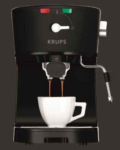 - 750-watt steam-driven espresso machine brews up to 4 cups of espresso at a time