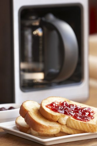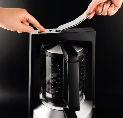 - Glass carafe with stay-cool handle; oversized control knob for switching over to steam mode