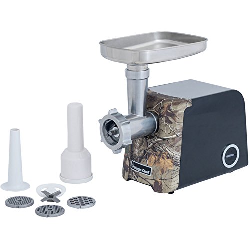 - Includes 3 grinding discs (fine, medium, coarse) and sausage making attachment