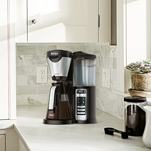 - Includes: 18oz. Hot and Cold Tumbler, Glass Ninja Easy Milk Frother, 100 recipe cookbook, permanent filter, Ninja coffee scoop, & 43oz. Glass Carafe with warming plate