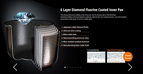 - Bottom Edge Dimple Pan (Expanded heating surface results in better tasting rice) / 5-layer Non-stick Black Fluorine Inner Pan (more durable and easier to clean)