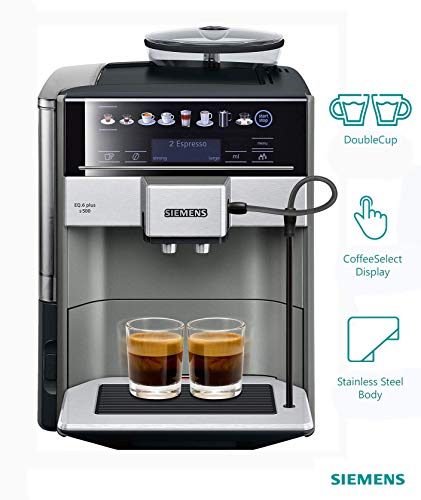 - PROFESSIONAL Brew two cups of magic drink simultaneously with Top-of-the-line Simens bean-to-cup brews two cups. Great brewing without having to learn how to be a barista. This fully automated machine has an integrated coffee grinder , a pump generating up to 15 bars of pressure, a water filter, Intelligent heater, an automatic milk frother, as well as electronic temperature control and pre-brewing technology.
