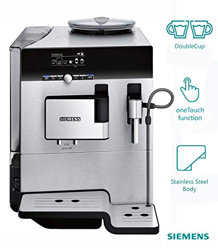 - PROFESSIONAL Brew two cups of magic drink simultaneously with Top-of-the-line Simens bean-to-cup brews two cups. Great brewing without having to learn how to be a barista. This fully automated machine has an integrated coffee grinder , a pump generating up to 19 bars of pressure, a water filter, Intelligent heater, an automatic milk frother, as well as electronic temperature control and pre-brewing technology.